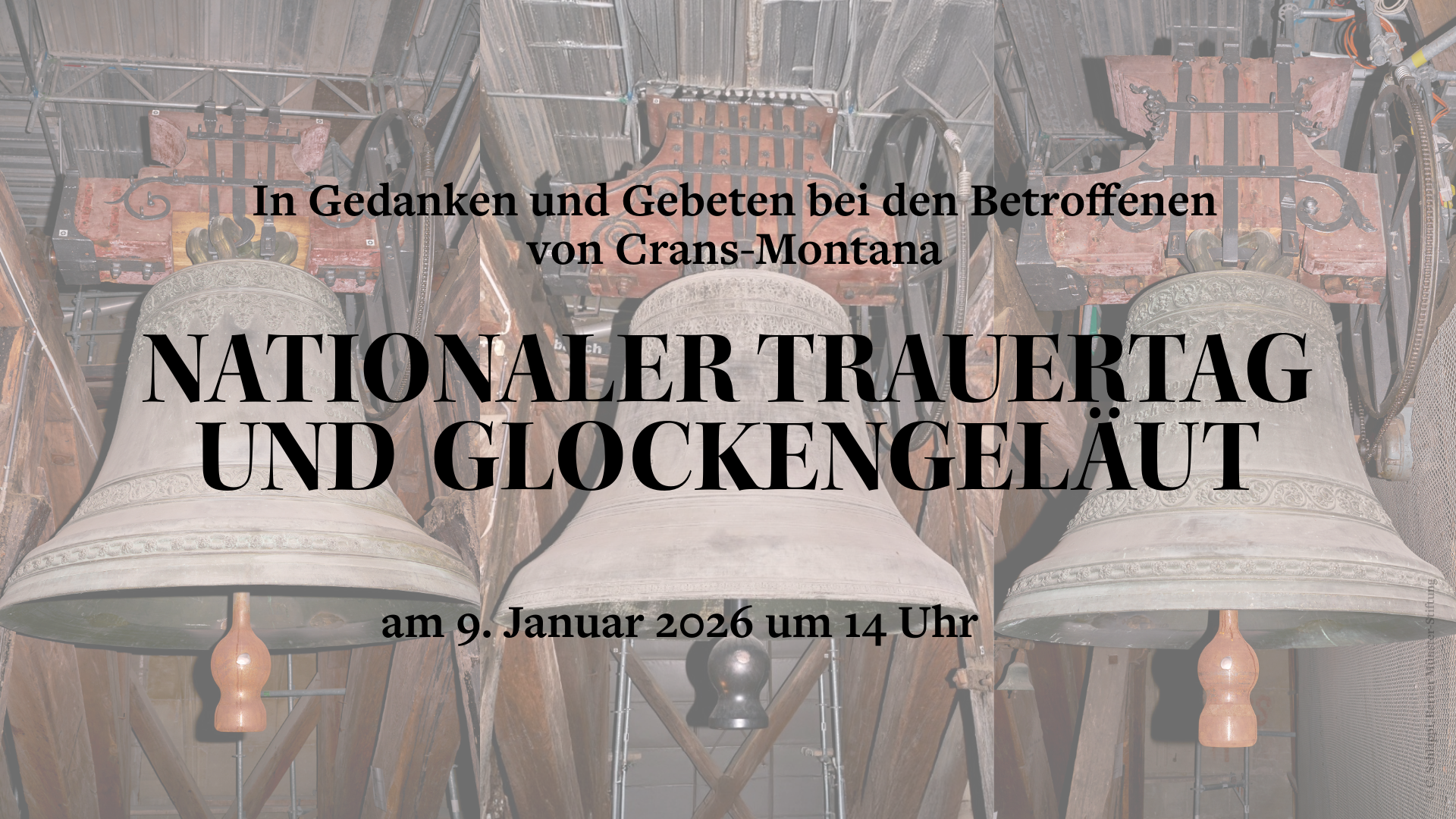 Am 9. Januar 2026, dem nationalen Trauertag nach der Brandkatastrophe in Crans-Montana, werden um 14 Uhr schweizweit die Kirchenglocken läuten.